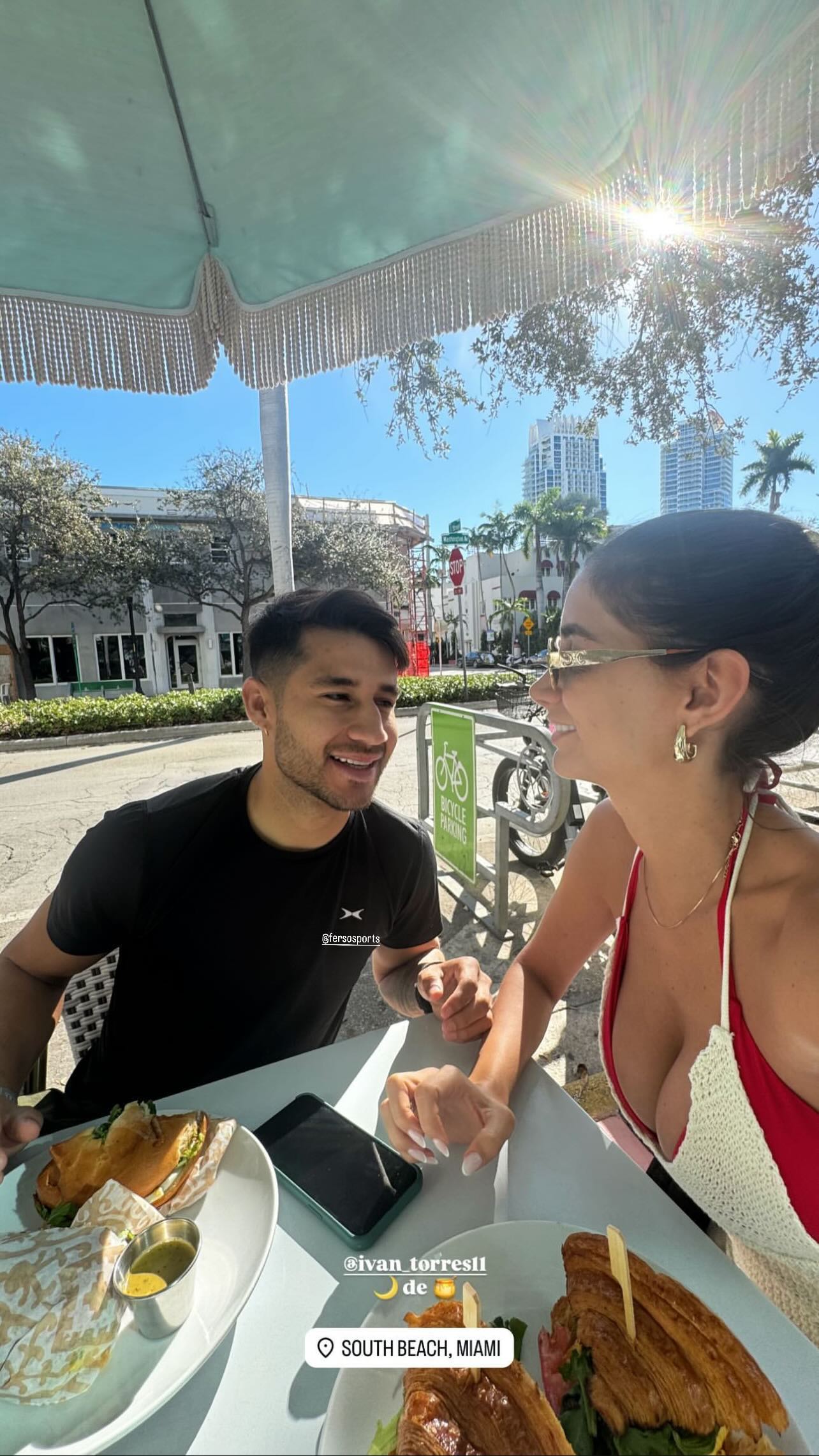 El pelotero y Stephi ya se mostraron hoy en Miami Beach, disfrutando de la ciudad y sus encantos. Un poco de café, caminata y playa, pelando cuero.