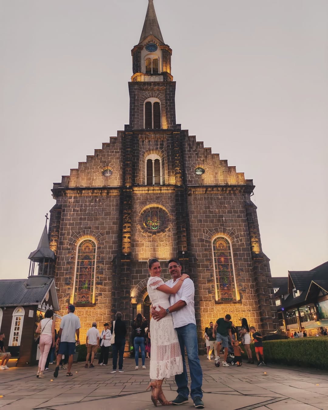 La pareja viajó hasta la ciudad rapai de Gramados para celebrar sus bodas de aluminio.