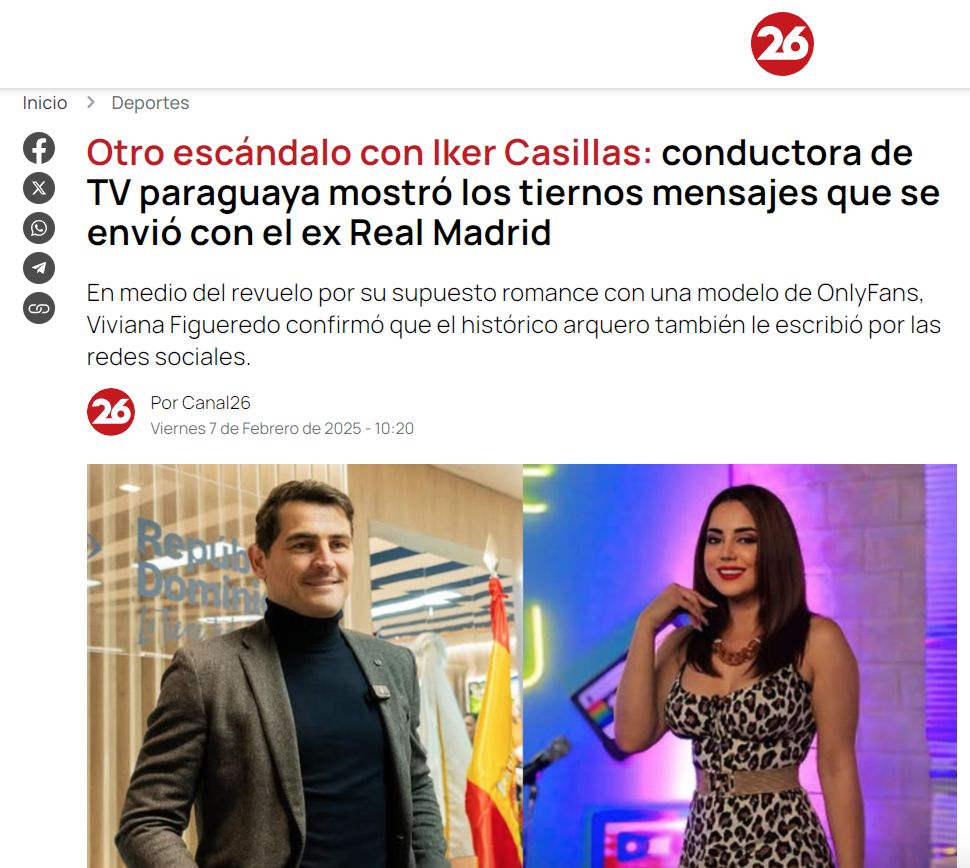 La modelo paraguaya Vivi Figueredo es protagonista internacional ya otra vez. Esta vez, por mandar al frente al ex arquero Iker Casillas en un programa de chismes de la televisión de España.