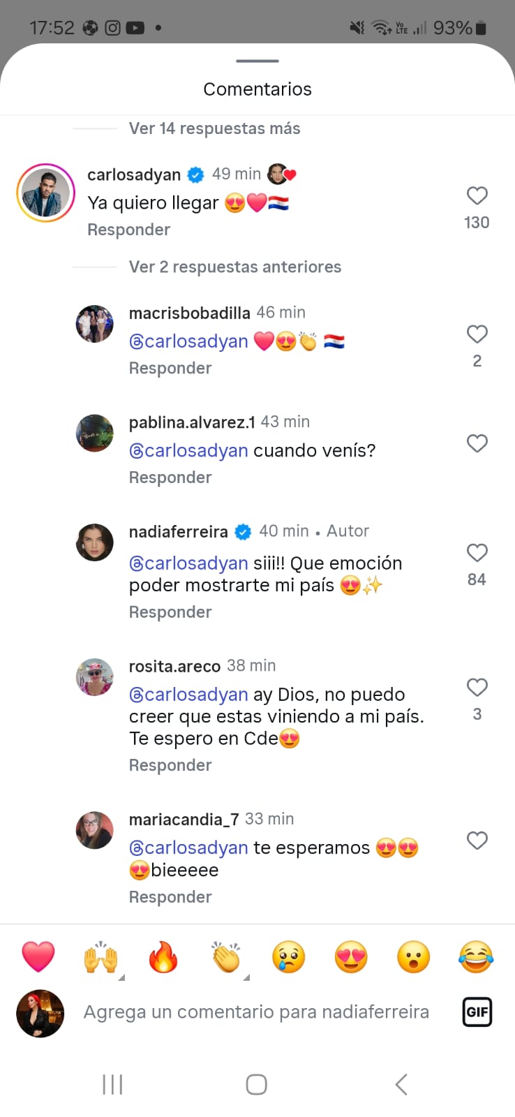 Carlos dijo que estaba ansioso por llegar a nuestro terruño y Nadia le respondió que no ve la hora de mostrarle nuestro país a su ami.