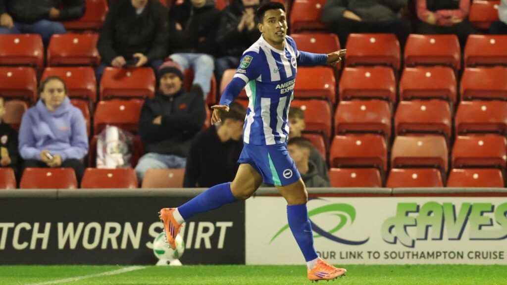 El mediocampista hizo el 2-0 y 3-0, resultado final con el que culminó el partido en el Falmer Stadium del Brighton.
