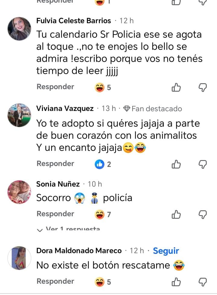 El oficial Carlos Miguel Ruíz, conocido por tener un refugio de animales y ser rescatista, presumió el cuerazo que ya logró con entrenamiento en el gym. “Allá vamos. Gracias Dios por este cuerpo que responde. Por esta mente que resiste y por este corazón que no se rinde”, he’ i. Esto dejó alborotadas a las yiyis y hasta le piden urgente que lance un calendario por los pichichos, y only fans. “Tu calendario señor policía se agota al toque, no te enojes bello, se admira”, opoi Fulvia Celeste Barrios, avei Estela Aguilera lanzó. “Ahorrando para comprar el calendario hot 2026”. Delcy Morales he’ i. “Haces un calendario con este tipo de fotos y rescatamos a todos los perros de la calle y hasta los que tienen casas”, Romina Ramírez. “Me sumo al pedido del calendario”, entre otros. Las “chi” hasta le solicitaron ndaje que lance su only fans. “Only y Paraguay libre de animalitos callejeros”, soltó.