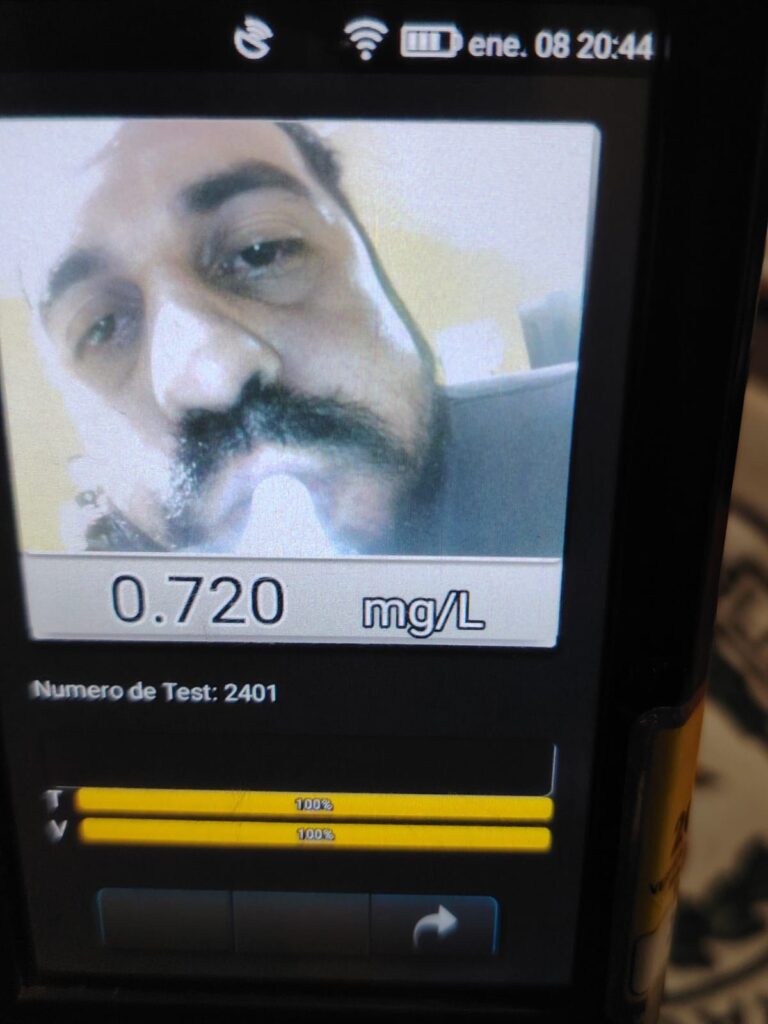 Minutos antes los agentes de la subcomisaría 45, fueron alertados por vecinos que denunciaron que un sujeto estaba tomando y produciendo polución sonora, con un feroz equipo instalado en su camioneta. Los agentes fueron y hallaron al sujeto, quien tras ser sometido al ka’utest dio positivo en 0,720mg/L, según el informe.
