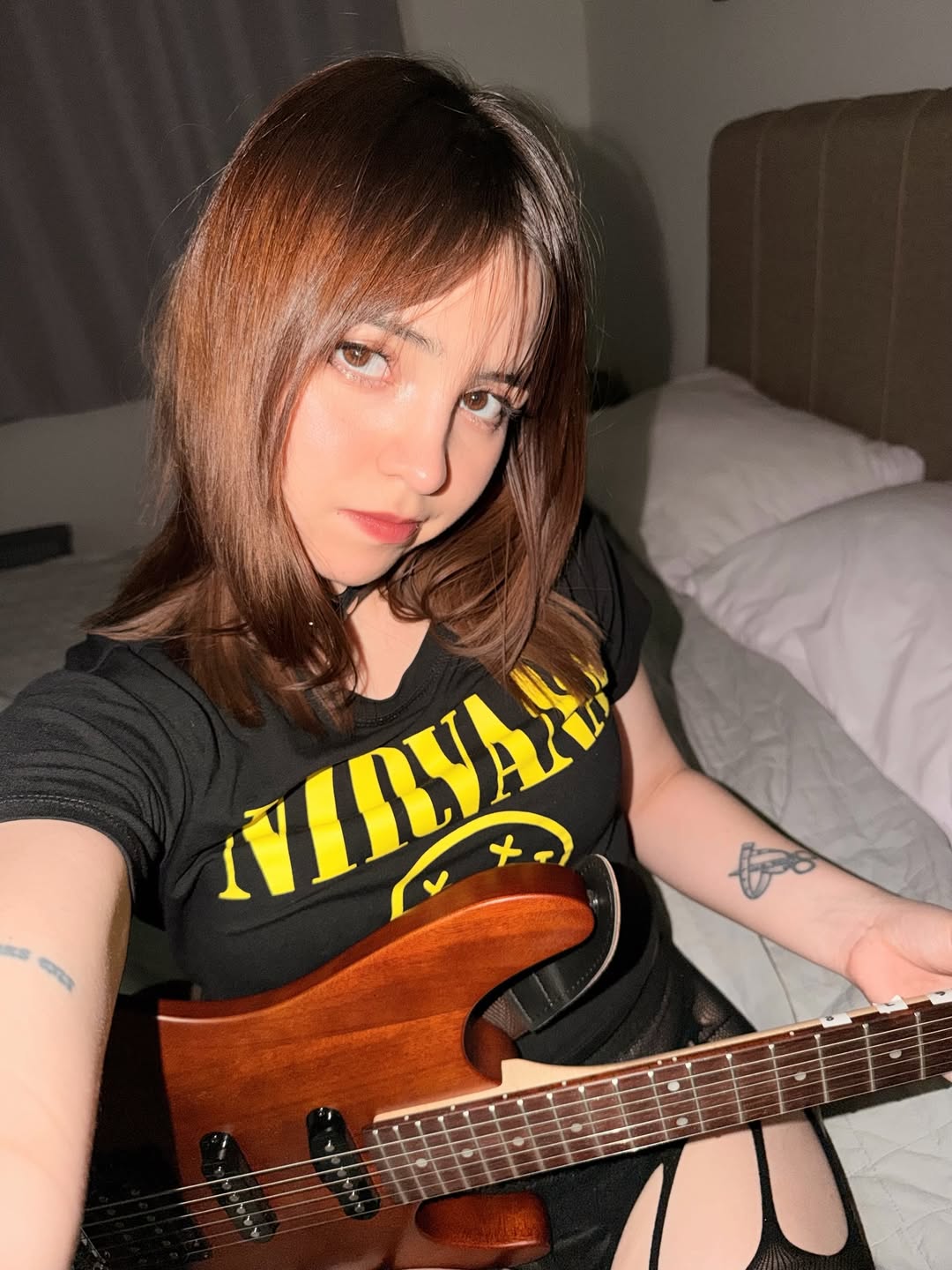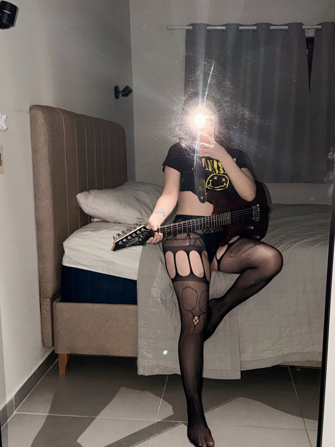 La creadora de contenidos anda pureando por su nueva adquisición: ¡Una guitarra eléctrica! La cuerona se muestra ejecutando a full el instrumento y ayer apareció sensualmente vestida como rcokerita y preguntando: “¿Te puedo cantar que lo cumplas feliz?”