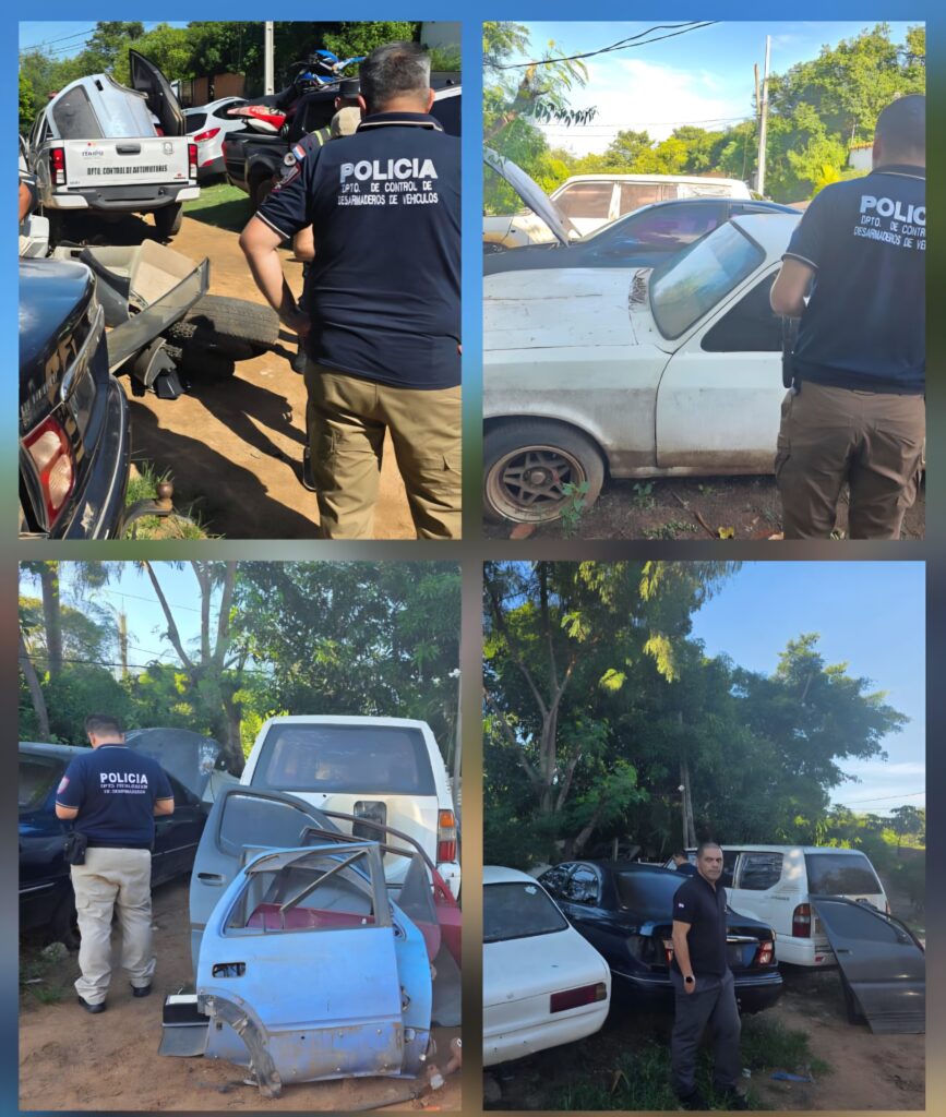 Upépe, los ta’ýra del comí Abelardo Acosta encontraron gran cantidad de autopartes. “Hemos hallado en el sitio vehículos en situación de desarme; entre camionetas, automóviles y motocicletas que serán peritados; además chasis pelados. También parabrisas, puertas y todo tipo de accesorios y autopartes de vehículos que ya habían sido desarmados”, omombe’u el comí Acosta.